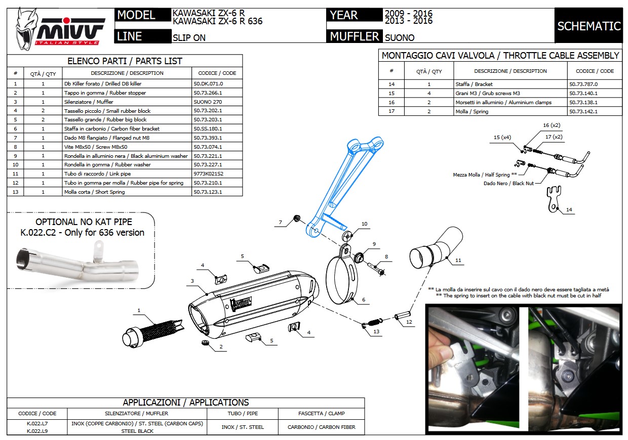 Mivv Suono RVS Black Slip-on Einddemper met E-keur Kawasaki ZX-6 R 636 2013 > 2016