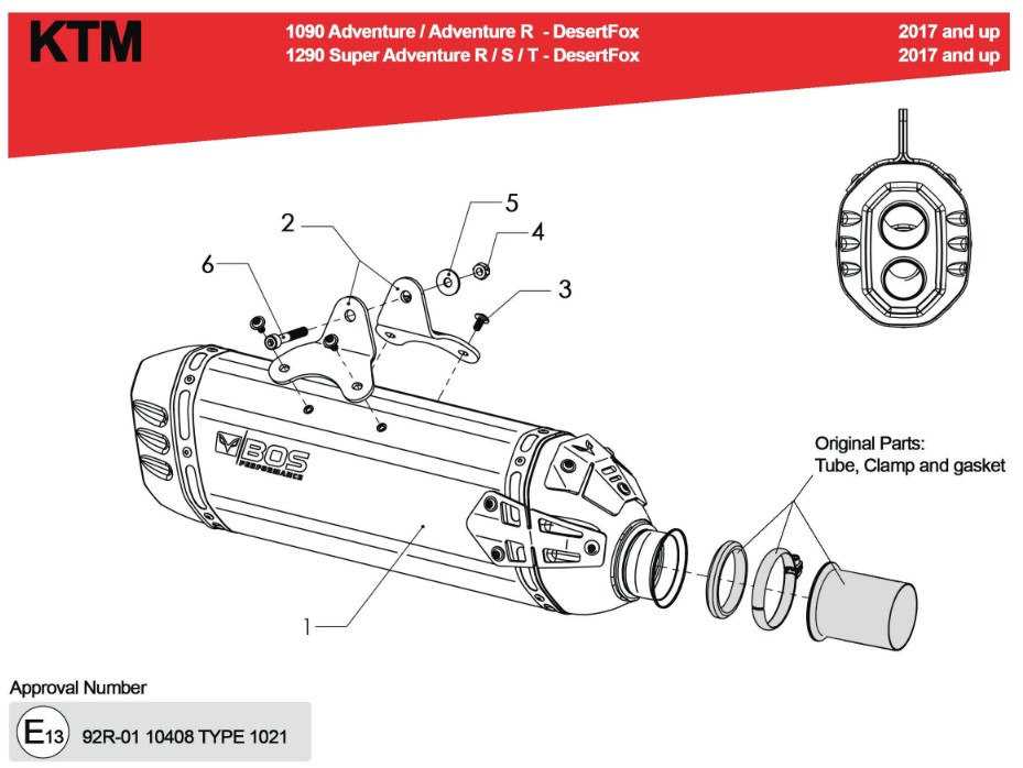 BOS Desert Fox Carbon Steel Einddemper met E-keur KTM 1290 Super Adventure R / S / T 2017 > 2020