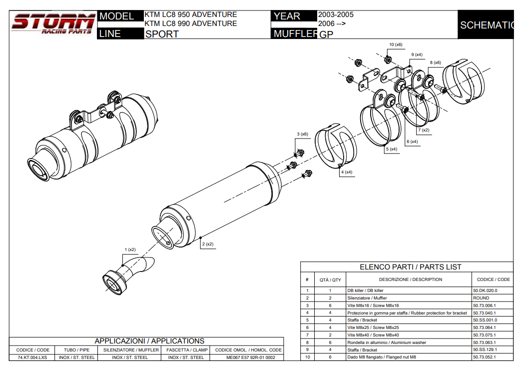 Storm By Mivv Dubbele GP RVS Black Bolt-On Einddemper Met E-keur KTM LC8 990 ADVENTURE 2006 - 2014