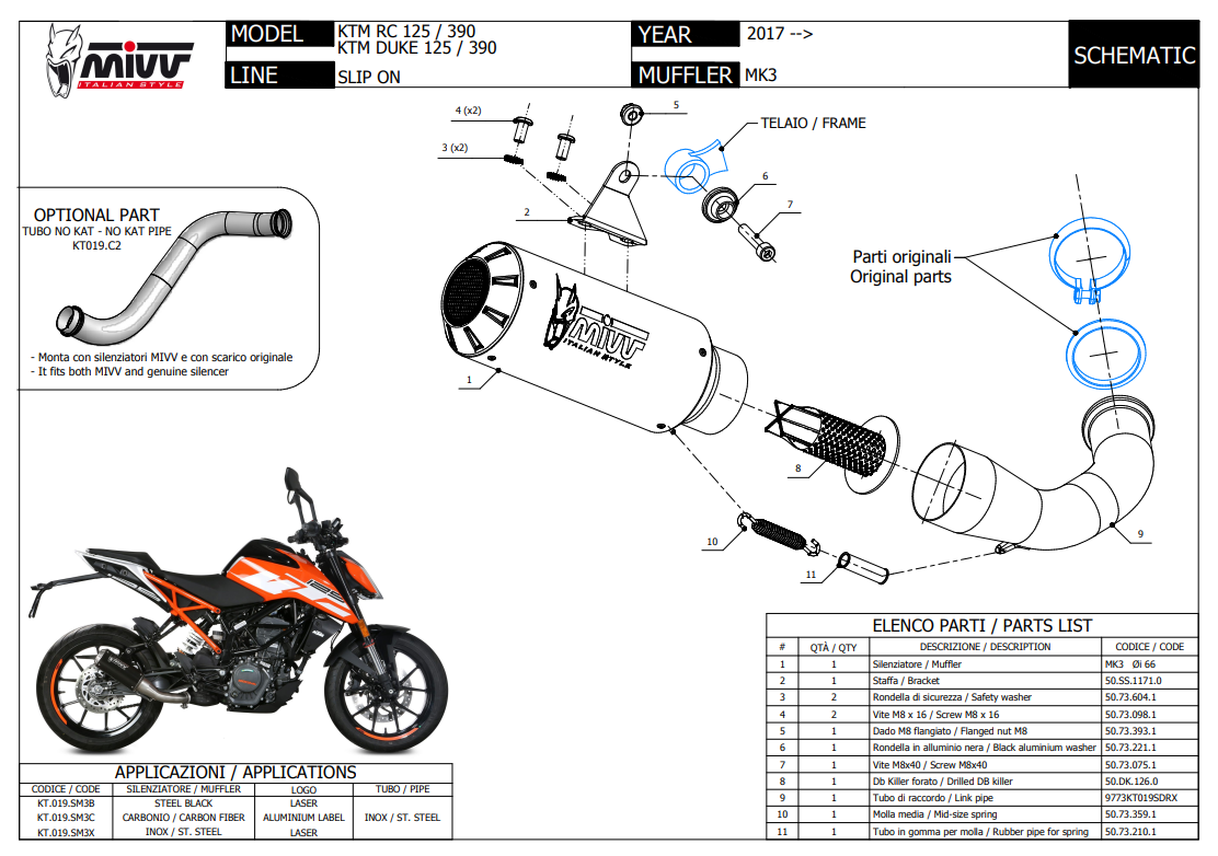 Mivv MK3 Carbon Einddemper zonder E-keur KTM 125 Duke 2017 > 2020