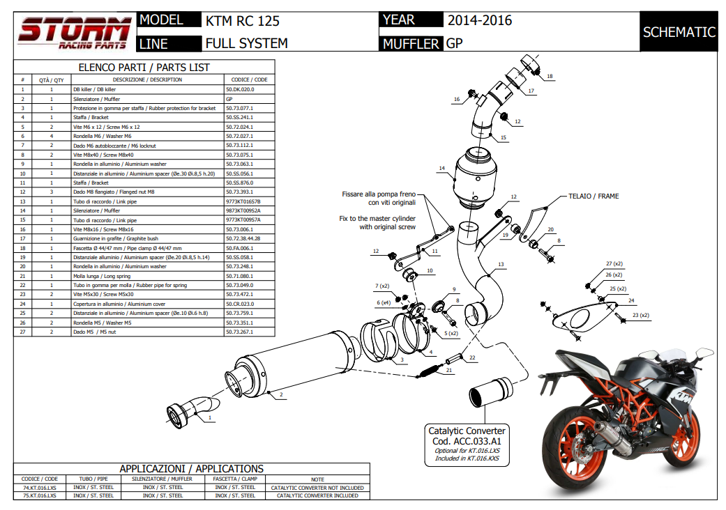 Storm By Mivv GP RVS Black Compleet 1in1 Uitlaatsysteem Met E-keur KTM RC 125 2014 - 2016