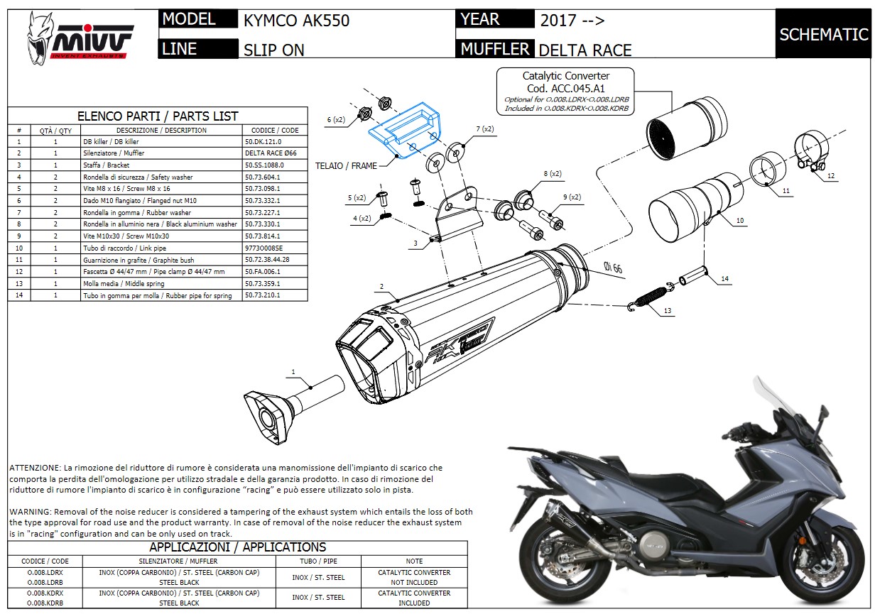 Mivv Delta Race RVS Black Slip-on Einddemper met E-keur Kymco AK550 2017 > 2020