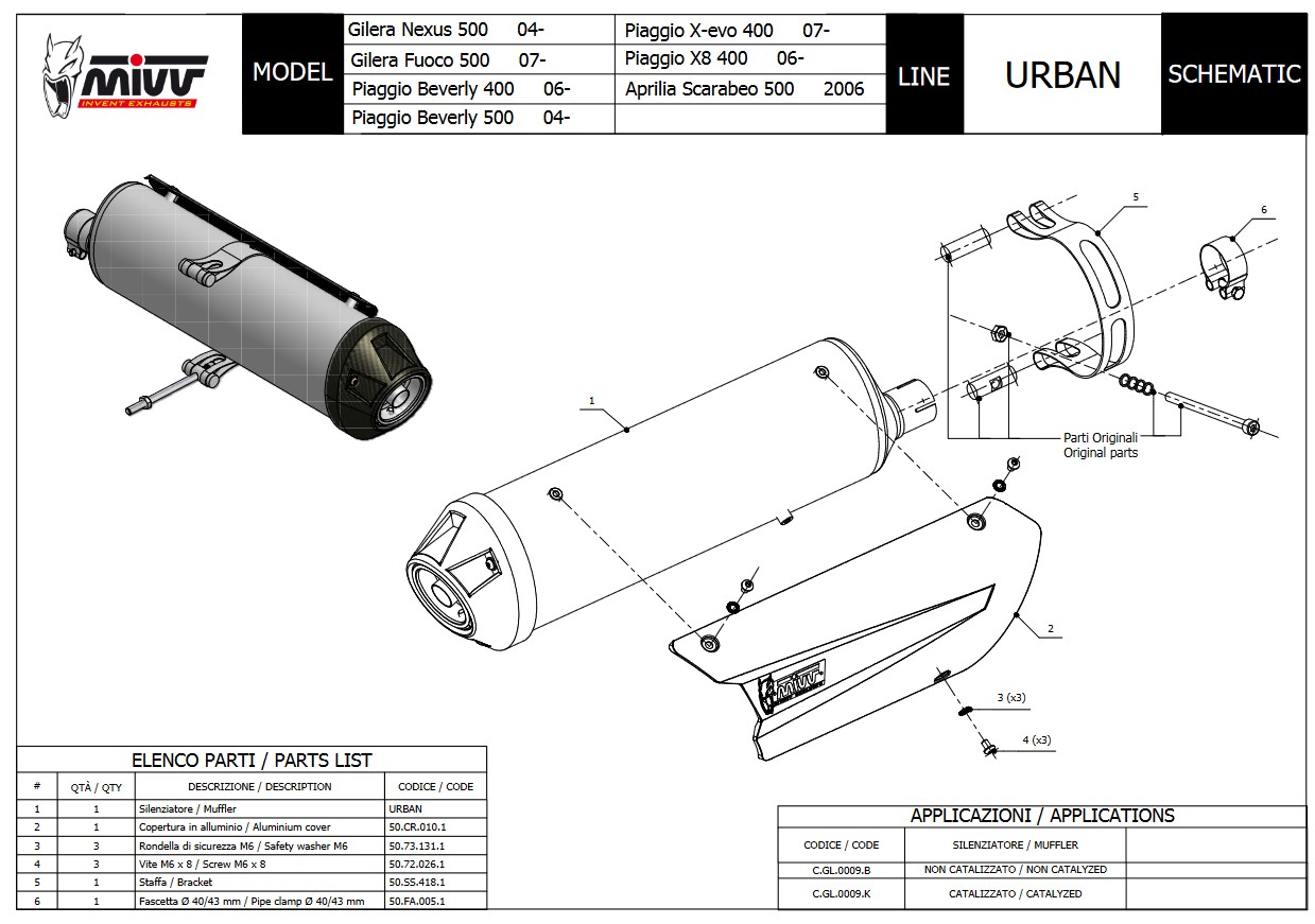 Mivv Urban RVS Slip-on Einddemper met E-keur Piaggio X-Evo 400 2007 - 2013
