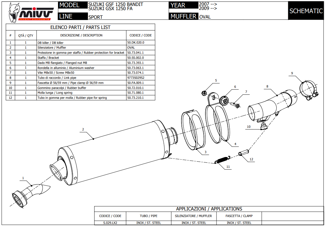 Mivv Oval RVS Slip-on Einddemper met E-keur Suzuki GSF 1250 Bandit 2007 > 2016