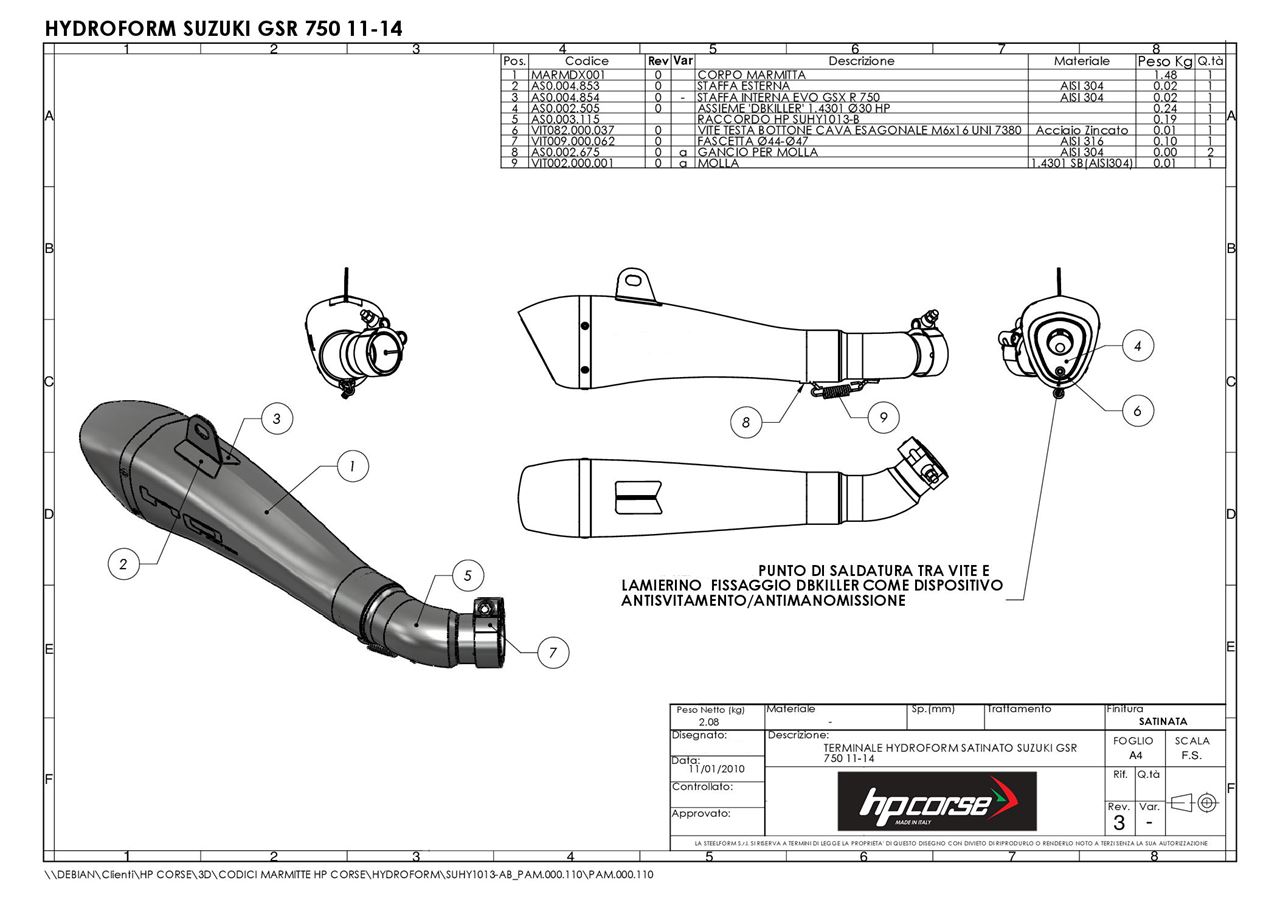 HP Corse Hydroform RVS Black Slip-on Einddemper met E-keur Suzuki GSR 750 2011-2015