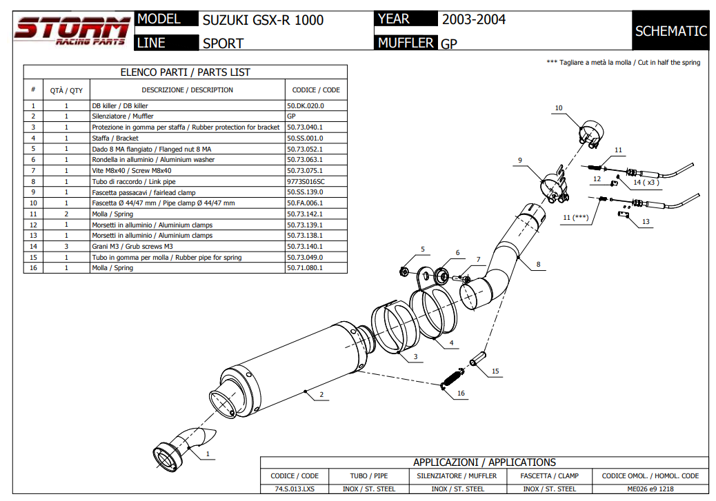 Storm By Mivv GP RVS Black Slip-On Einddemper Met E-keur SUZUKI GSX-R 1000 2003 - 2004