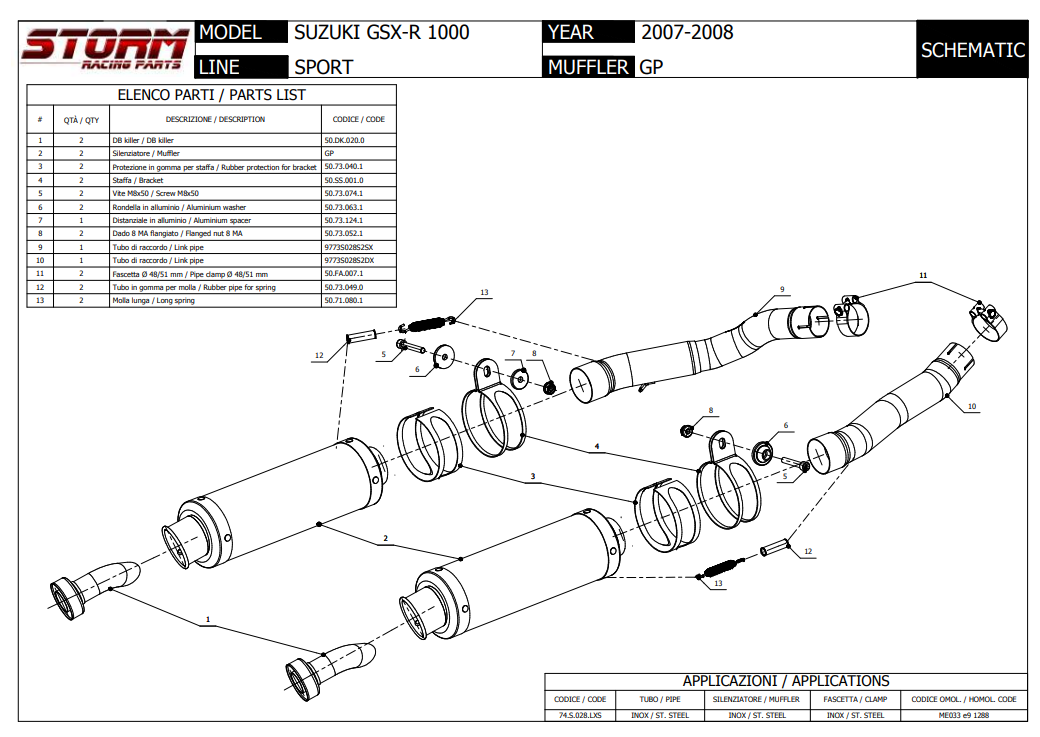 Storm By Mivv Dubbele GP RVS Black Slip-On Einddemper Met E-keur SUZUKI GSX-R 1000 2007 - 2008