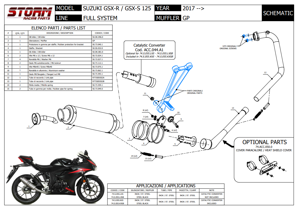 Storm By Mivv GP RVS Black Compleet 1in1 Uitlaatsysteem Met E-keur SUZUKI GSX-R 125 2017 - 2020