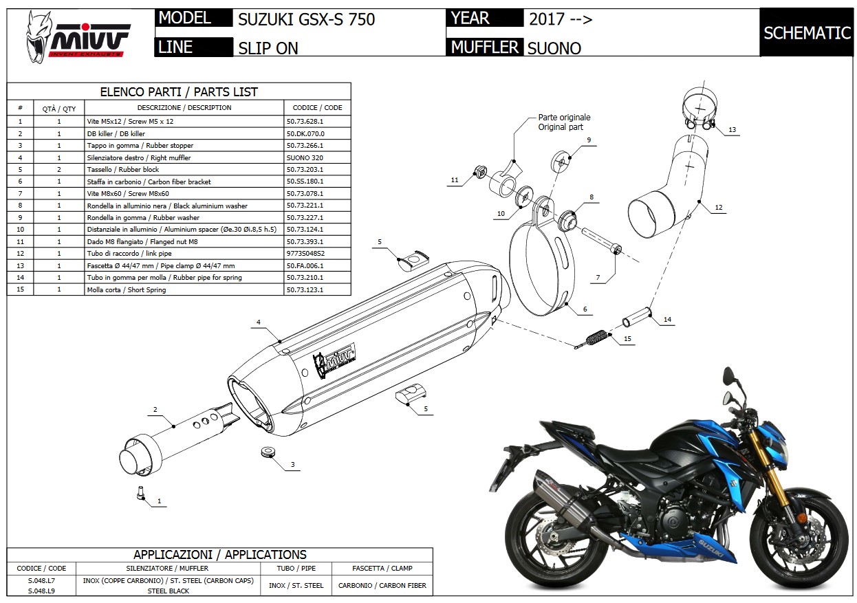 Mivv GP Carbon Slip-on Einddemper met E-keur Suzuki GSR 750 2011 > 2016