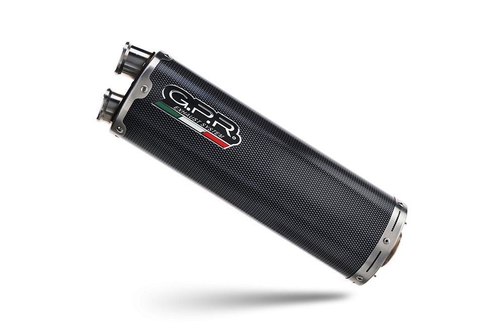 GPR developed the Dual Poppy exclusively for the enduro and grand touring bikes. It is made of 304 stainless steel with a carbon look finish and dual outlets. It has an elliptical shape that measures 100 MM x 130 MM.FEATURES• SOUND: Upgraded sound from stock exhaust• PERFORMANCE: Upgraded performance from stock exhaust• QUALITY: Italian made with high-grade welding• WEIGHT: Lighter than stock exhaust This is an original GPR product, developed after GPR's experience in the World Championship. It offers an innovative design, improved performance, weight savings and a full-bodied sound