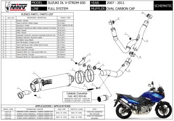 Mivv Oval Carbon met Carbon Cap Volledig Uitlaatsysteem met E-keur Suzuki DL V-Strom 650 2007 > 2011