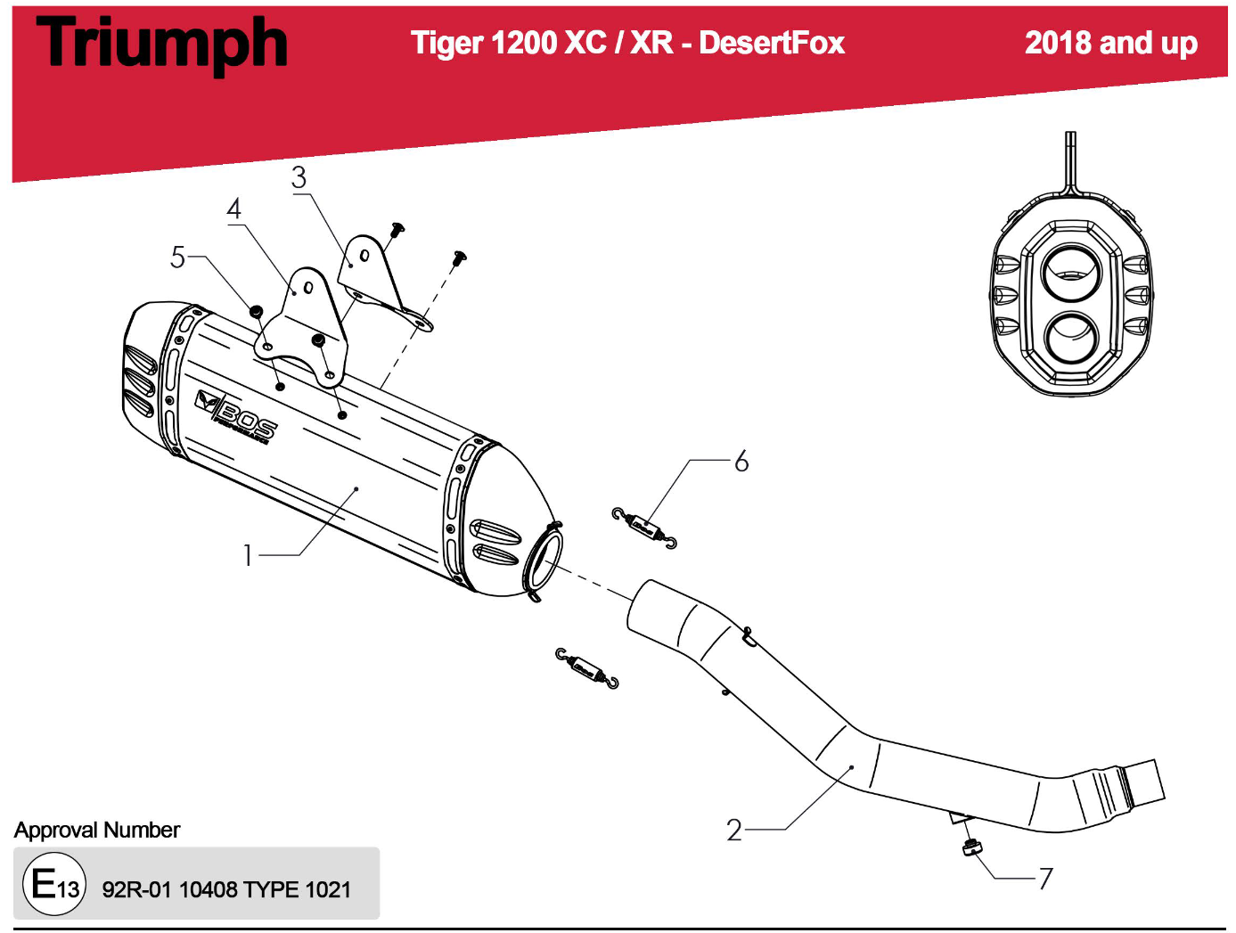 BOS Desert Fox Carbon Steel Einddemper met E-keur Triumph Tiger 1200 Explorer 2017 - 2020