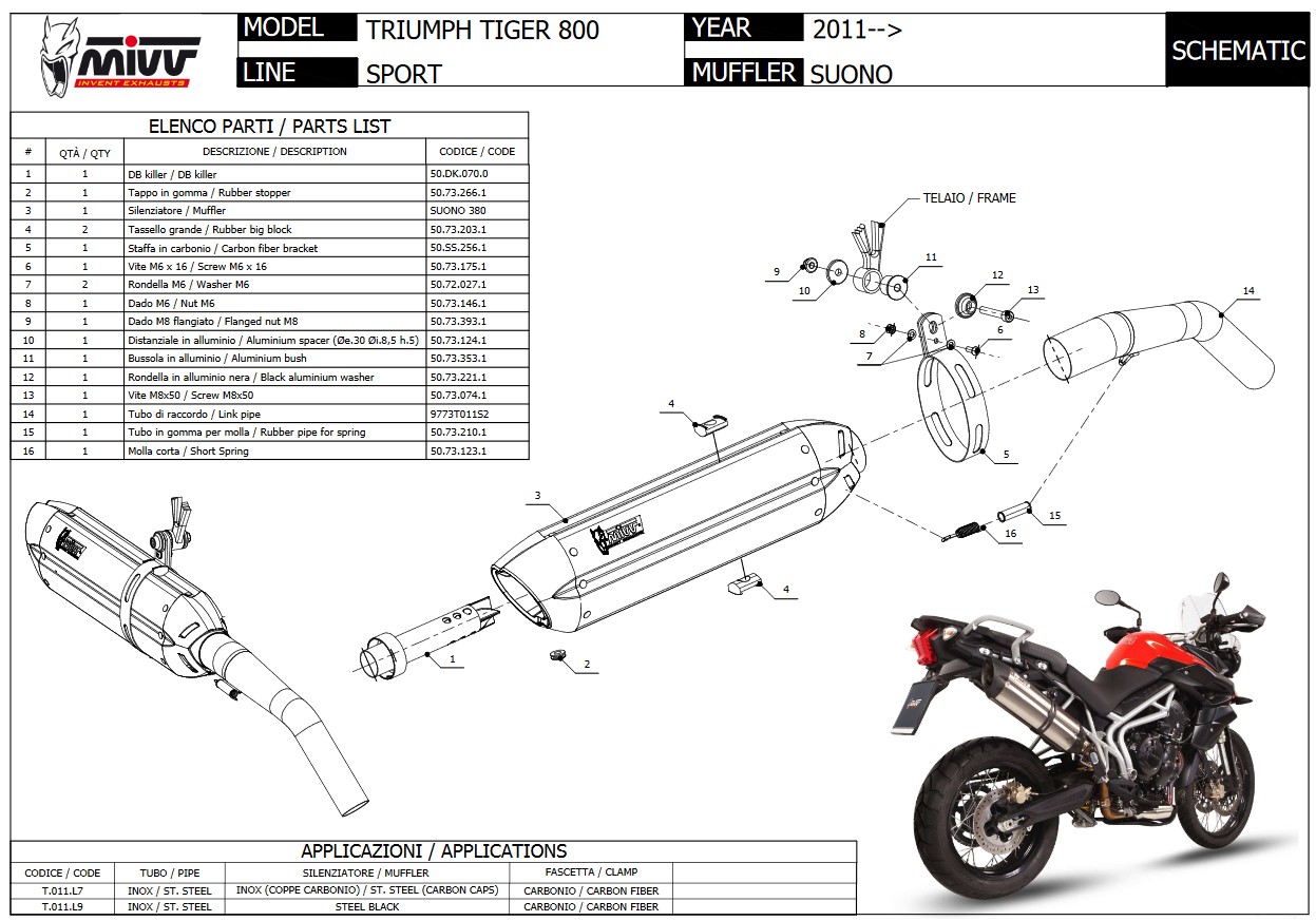 Mivv Suono RVS Black Slip-on Einddemper met E-keur TRIUMPH Tiger 800 XC / XR / XRX / XCX / XRT / XCA 2011 > 2016