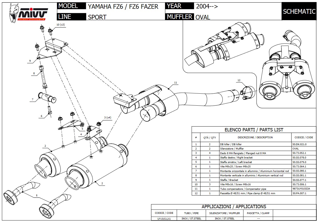 Mivv Oval RVS Dubbele Slip-on Einddemper (L+R) met E-keur Yamaha FZ6 / Fazer 2004 > 2011
