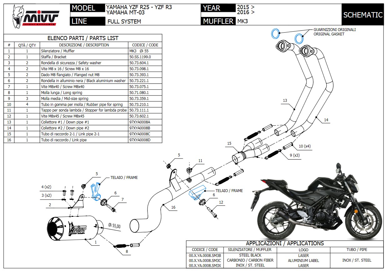 Mivv MK3 RVS Compleet Uitlaatsysteem zonder E-keur Yamaha MT03 2016 > 2024