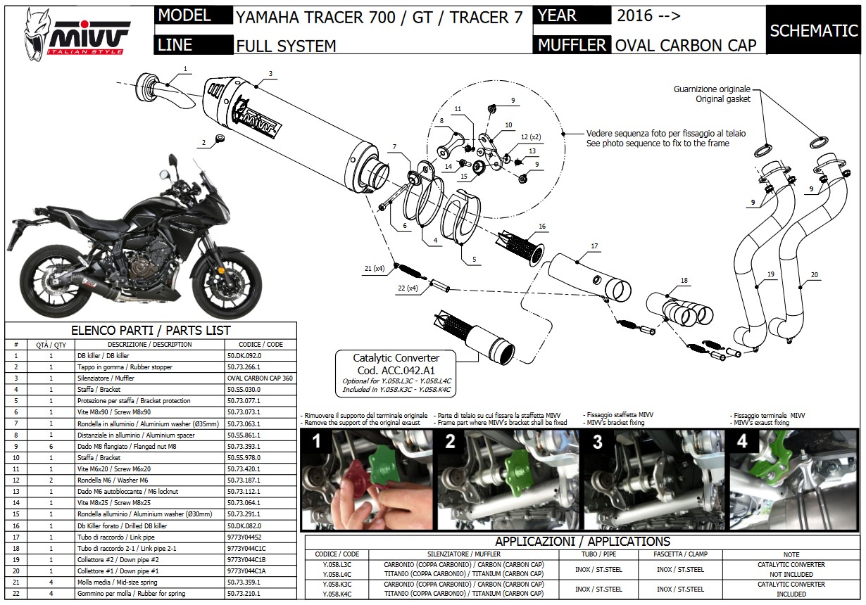 Mivv Oval Titanium met Carbon Endcap Compleet Uitlaatsysteem met E-keur Yamaha Tracer 700 / GT 2016 > 2020