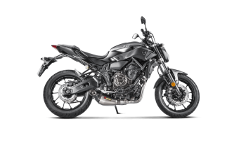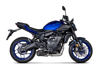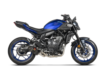 Akrapovič — Yamaha's eigen keuze. De Racing Line Titanium is speciaal voor de MT-07 ontwikkeld in samenwerking met Yamaha, inclusief MT-07-opdruk. Compleet systeem met RVS headers, titanium demper en carbon eindkap. E-keur beschikbaar (met optionele katalysator).