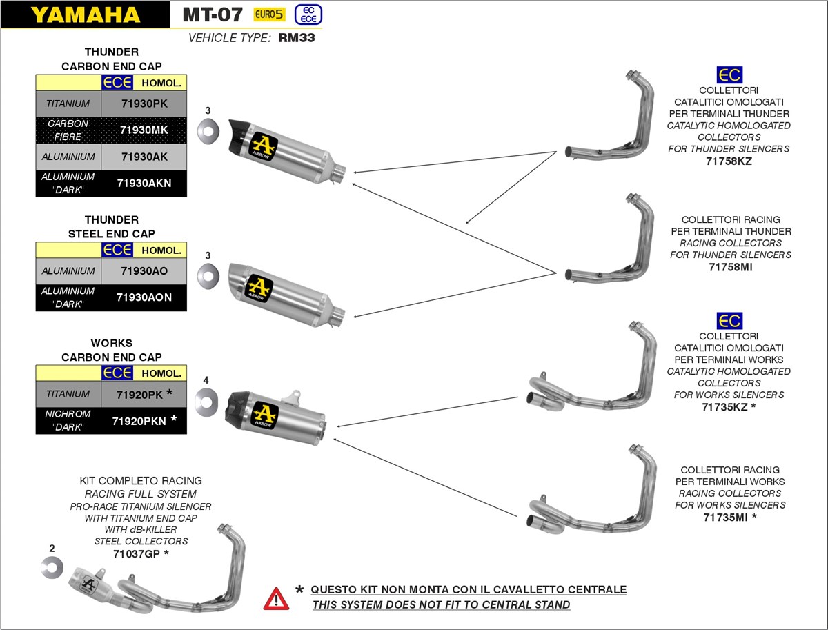 Arrow Thunder Carbon Volledig Uitlaatsysteem zonder E-keur Yamaha MT-07 2021 - 2024