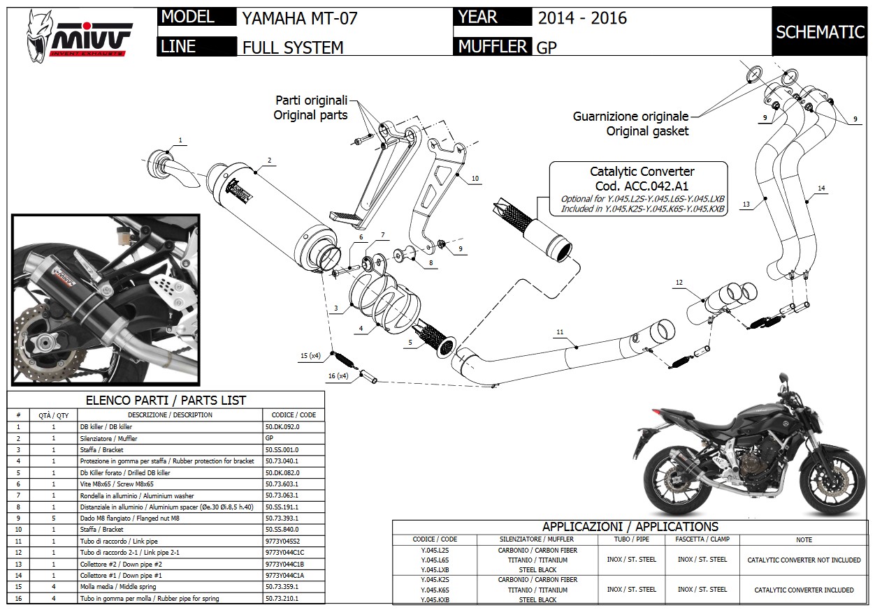 Mivv GP Carbon Compleet Uitlaatsysteem met E-keur Yamaha MT-07 2014 > 2023