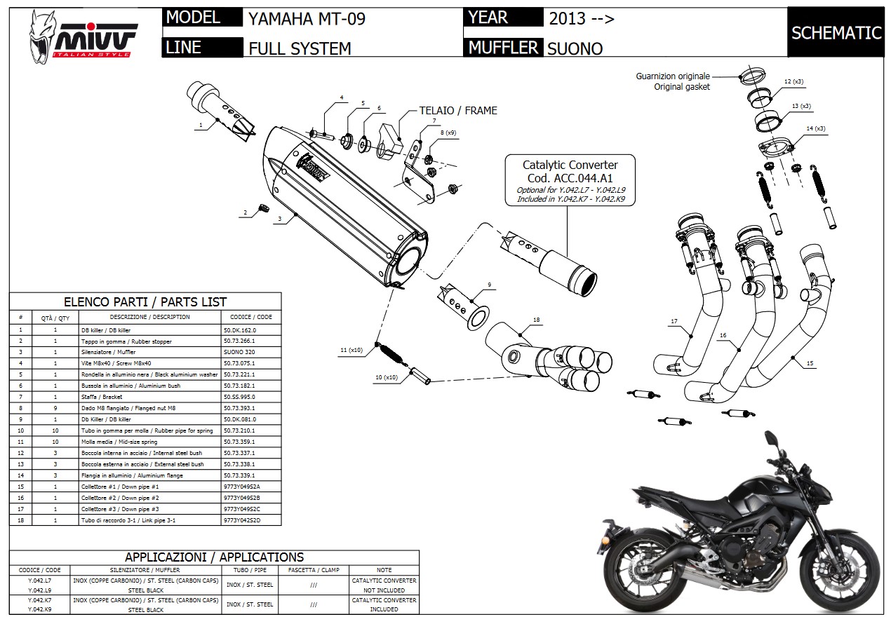Mivv Suono RVS Compleet 3in1 Uitlaatsysteem met E-keur Yamaha MT-09 2013 > 2020
