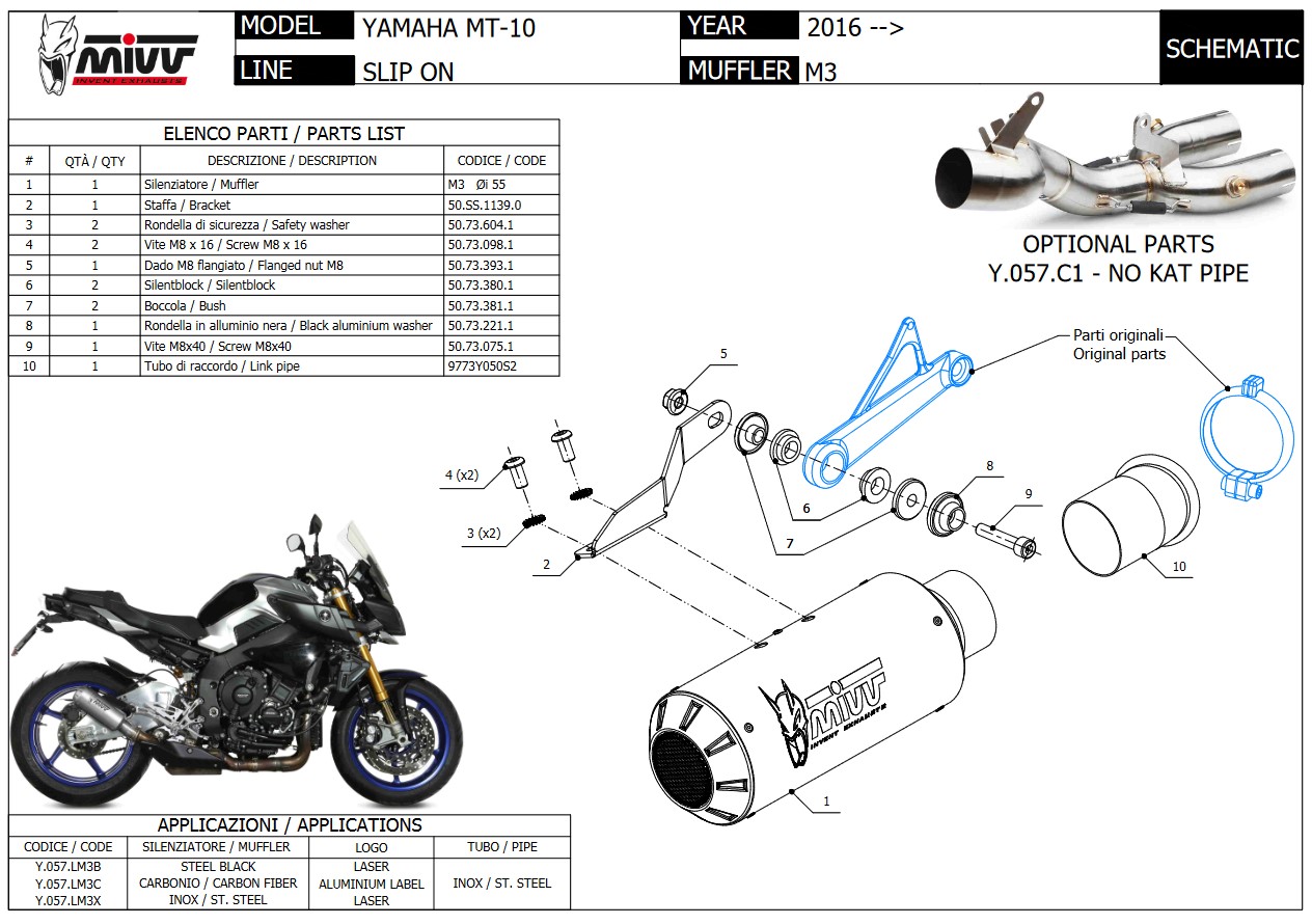 Mivv MK3 RVS Black Slip-on einddemper met E-keur Yamaha MT-10 2016 - 2022