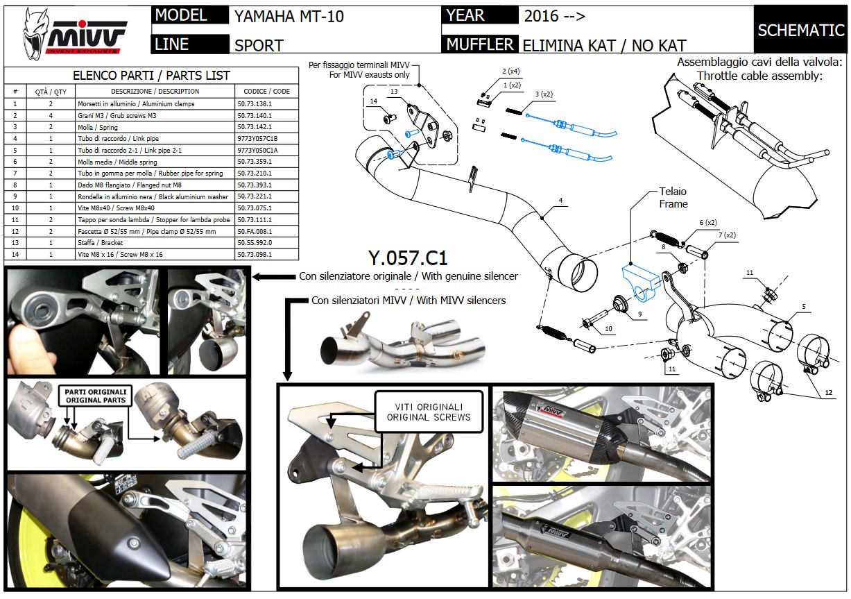 Mivv No-Kat. Pipe RVS Katvervanger Yamaha MT10 / FZ10 2016 > 2022