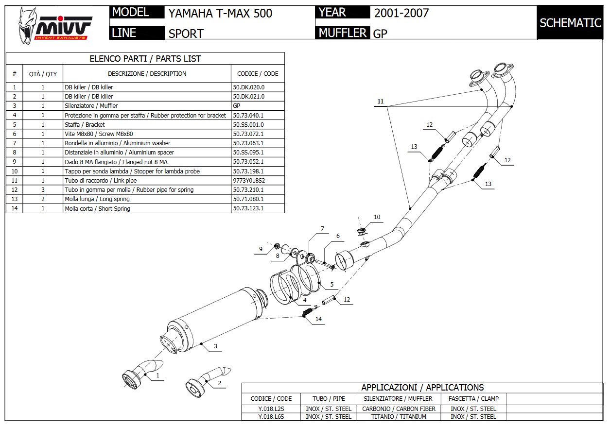 Mivv GP RVS Black Compleet 2in1 Uitlaatsysteem met E-keur Yamaha T-MAX 500 2001 > 2007