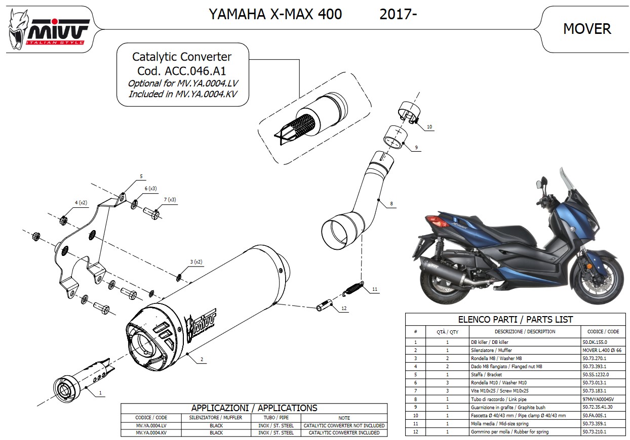 Mivv Mover RVS Black Slip-on Einddemper met E-keur Yamaha X-MAX 400 2017 > 2020