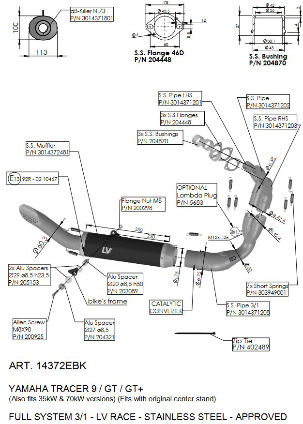 Deze uitlaat is vervaardigd uit AISI 304 roestvrij staal met een matte, hittebestendige keramische zwarte lak. De uitlaat is voorzien van TIG-lasnaden, honingraatgaas, een gelaserde beugel en een stijlvol LV-logo zowel geetst als geperst op aluminium plaat. Met een gewicht van 5,63 kg is dit een robuuste, maar straatlegale upgrade inclusief link pipe en E-keur certificaat.