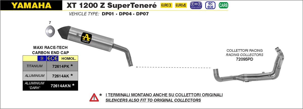 Arrow Maxi Race-Tech Aluminium Dark met Carbon Endcap Einddemper met E-keur Yamaha XT 1200 Z Super Tenere 2010 > 2020