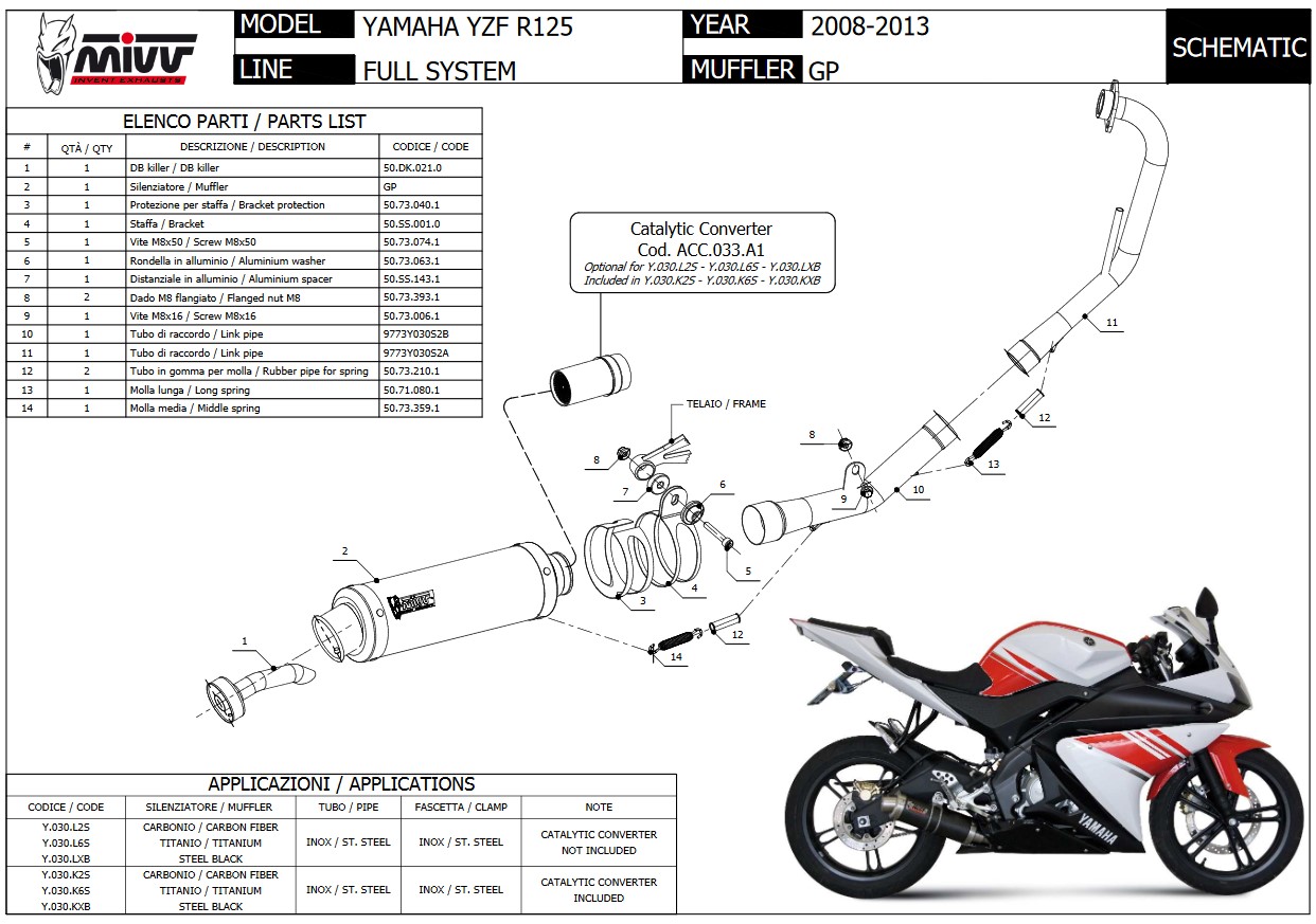 Mivv GP Carbon Compleet Uitlaatsysteem met E-keur Yamaha YZF R125 2008 > 2013