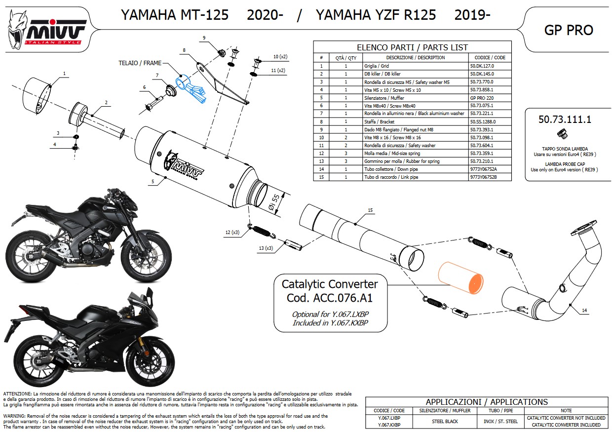 Mivv GP Pro Black Volledig Uitlaatsysteem met E-keur Yamaha YZF R 125 2019 > 2024