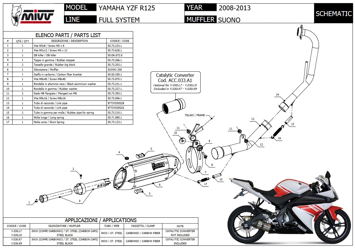 Mivv Suono RVS Black Compleet 1in1 Uitlaatsysteem met E-keur Yamaha YZF R125 2008 > 2013