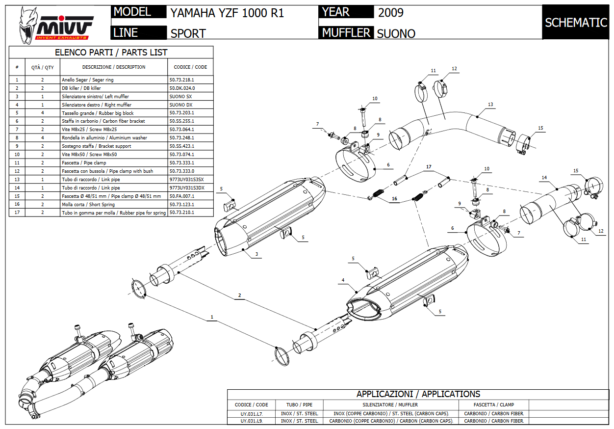 Mivv Suono RVS Black Dubbele Underseat Slip-on Einddemper (L+R) met E-keur Yamaha YZF 1000 R1 2009 > 2014
