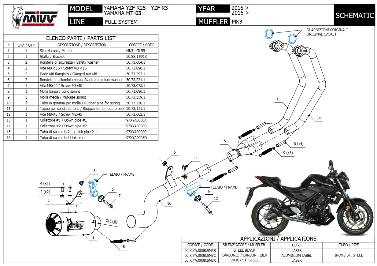 Mivv MK3 Carbon Compleet Uitlaatsysteem zonder E-keur Yamaha YZF-R25 2015 > 2024