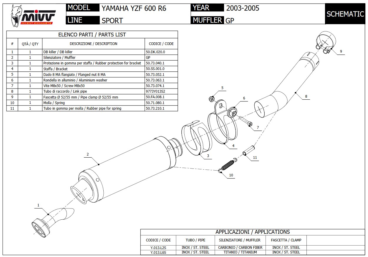 Mivv GP RVS Black Slip-on Einddemper met E-keur Yamaha YZF 600 R6 2003 > 2005