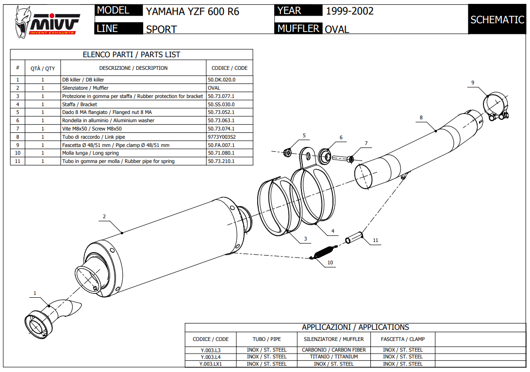 Mivv Oval Carbon Slip-on Einddemper met E-keur Yamaha YZF 600 R6 1999 > 2002