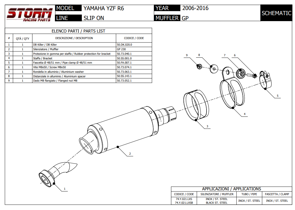 Storm By Mivv GP RVS Black Slip-On Einddemper Met E-keur YAMAHA YZF 600 R6 2006 - 2016