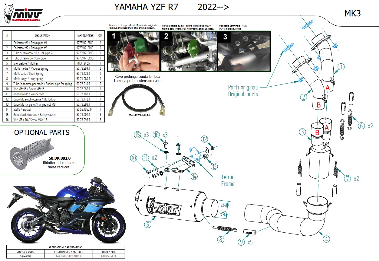 Mivv MK3 Carbon Compleet Uitlaatsysteem zonder E-keur Yamaha R7 2022 > 2024